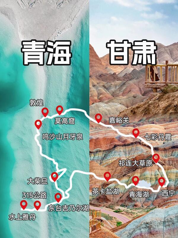 當然,就遊玩體驗來說,我肯定是推薦你走大環線,準備個七八天時間,這樣一趟下來途徑張掖丹霞-嘉峪關-鳴沙山月牙泉-敦煌莫高窟-雅丹魔鬼城-大地之子瓜州-網紅U形公路-翡翠湖-茶卡鹽湖-青海湖,8天時間, 油菜花、草原、雪山、當地風俗文化、丹霞、邊關、莫高窟、沙漠、戈壁、鹽湖、雅丹景觀俱全,一次旅行,半個中國,網紅與小眾景點一網打盡、深度旅行,體驗真正的西北大環線!